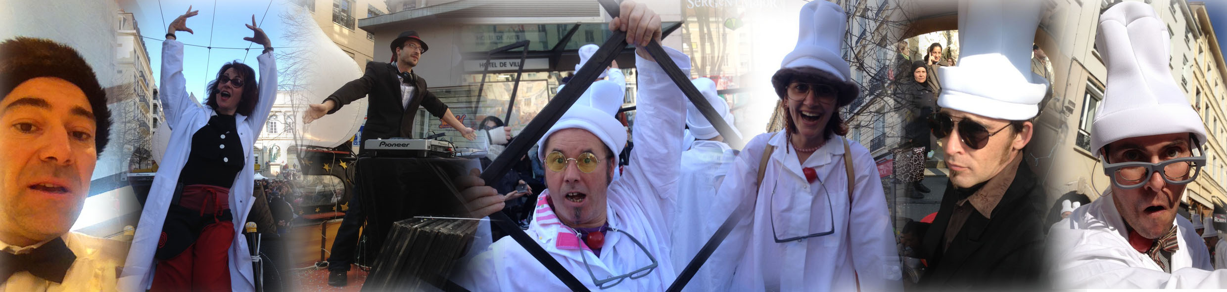 Couleurs déjà avec les rues de St-Étienne qui ont vu une vague blanche à nez rouges déferler au son de DJ « B-Brain » perché sur la Circomobile, elle-même conduite avec brio par Wilfried Drago qui nous a rejoint pour l’occasion ! Et Son électro-pop pour des chorégraphies burlesques, aussi bien au sol que pour les échassiers qui ont donné le ton en ouvrant le défilé !