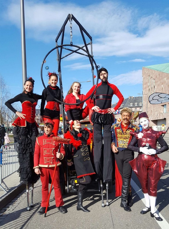 Les 8 artistes, même arrivés tard dans la nuit, ne perdront pas une once de motivation et présenteront une déambulation sous la musique de la désormais célèbre « Circo-mobile ». Là aussi, couleurs, hauteur, rires, frayeurs, exploits et bonne humeur auront fait le bonheur des Alsaciens !